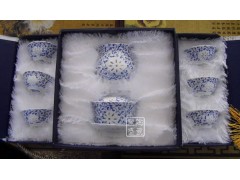 我公司生產(chǎn)的景德鎮(zhèn)陶瓷茶具造型優(yōu)美、品種繁多、裝飾豐富、風格獨特。瓷質"白如玉、明如鏡、薄如紙、聲如磬"。有手繪青花、粉彩、玲瓏、顏色釉各種樣式。還可以根據(jù)您的需要印制您需要的各種圖片、添加公司LOGO圖形和文字等。