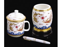 珠海供應(yīng)紀(jì)念品,金運(yùn)龍鳳旋轉(zhuǎn)筆筒含筆三件套