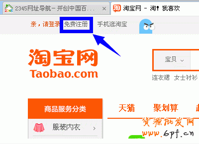 進入淘寶網的首頁,點擊左上角的“免費注冊”跳轉進入一個新的頁面;如下圖: