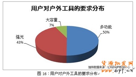相關數據表明,背包和腰包類商品,要有更多的口袋區分;而對于手電一類的工具,用戶的要求就是“亮點、再亮點”。