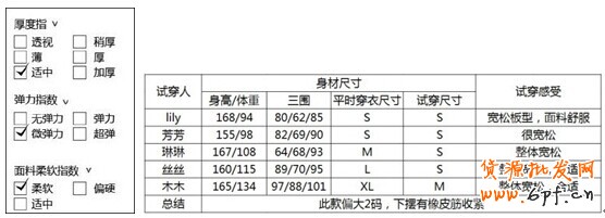 圖片在拍攝的時候是沒有參照物的,建議增加具體參數:比如柔軟指數、厚度指數、模特身材參考等