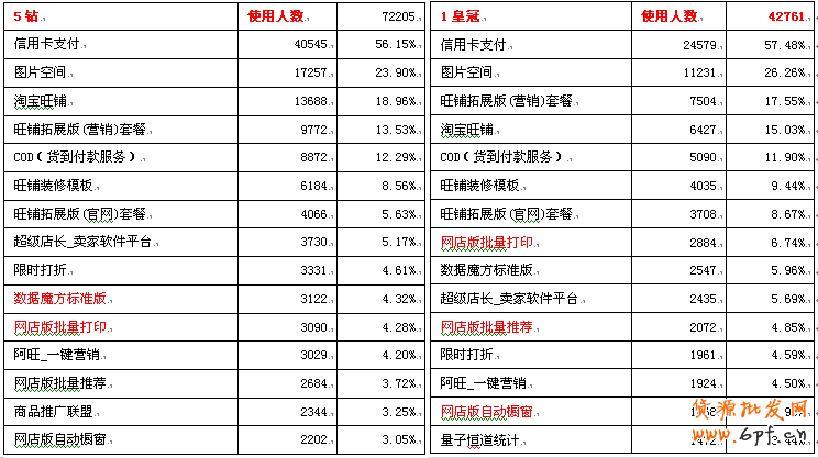 同時因為信譽等級越高,賣家基數越少,想對應的工具也較少,所以在工具采用比率上會比較高。