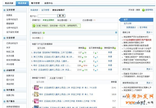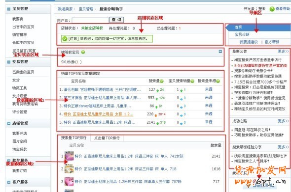 1 我的淘寶——我是賣家——寶貝提醒——搜索診斷助手
