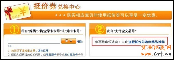 抵價券領取成功提示如圖: