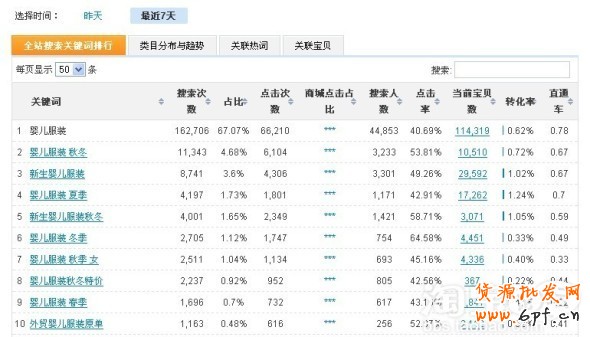 這只是我打的一個比方,我搜索我的行業最大的關鍵詞舉例,嬰兒服裝 搜索的人數1周下來有44853人次.含有這個關鍵詞的寶貝數量有114319個.我們可以試想一下,我們需要找的關鍵詞,最理想的狀態是個什么數據呢,搜索人數越大,轉化率越高,寶貝數量相對比較少.當然這個是比較理想的狀態,有這樣好的關鍵詞,都搶著去用了.但熱門的關鍵詞,我們小賣家用不起,我們就可以挑選一些相對比較好的關鍵詞.具體就得靠大家自己去分析數據了.在搜索人數,次數,轉化率 寶貝數量,這4個數值上找到一個相對比較好的關鍵詞,那么就是比較適合我們中小賣家的了.因為每個行業不同,所以我沒辦法一一舉例.請不要再聯系我時直接問我,我該選擇什么關鍵詞.找自己最合適的.寶貝處于熱賣,或者是爆款的時候,可以直接按照數據魔方上提供的熱門關鍵詞挨個使用,能用的都用上.