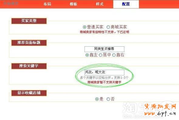 選擇您想要的“布局”,這里最好選每行展示3-4個(gè)寶貝,展示效果好點(diǎn),多了,圖片太小就達(dá)不到預(yù)期的效果;“模板”,您可以根據(jù)自己寶貝特性選擇或是自我感覺來選擇;“樣式”,可以選擇顯示寶貝名稱、掌柜旺旺或是寶貝價(jià)格;“配置”,這里的多選框或可填內(nèi)容的部分盡量寫出內(nèi)容來,俗話說多多益善嘛,特別是“配置”欄里的關(guān)鍵詞選擇您店里當(dāng)前熱銷的寶貝填進(jìn)去,效果會(huì)更好呢。