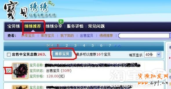 以最少的錢展示更多的寶貝是每一個(gè)做推廣人的心理,我們知道直通車是個(gè)很燒錢的項(xiàng)目,開的不好就會(huì)陰溝溝里翻船,血本無歸而返。至于選擇什么樣的寶貝、怎么設(shè)置寶貝來開直通車,您可以參閱我的相關(guān)帖子(12.6名人堂PK帖),這里不再贅述。繼續(xù)在“寶貝繡繡”里打開“繡繡推薦”,勾選出您要推薦的寶貝,建議最好選擇您上面裝修過的寶貝,這樣的效果會(huì)更好,點(diǎn)擊“推薦寶貝”,接下來,按步驟設(shè)置相關(guān)參數(shù)。
