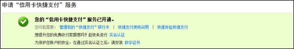 4、招商信用卡快捷支付開通成功。