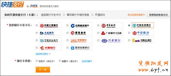 農行儲蓄卡快捷支付開通方法一:在支付過程中開通。
