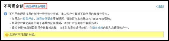 第三步:在“不可用余額”頁面,點擊“凍結(jié)/解凍總明細(xì)”