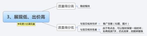 如質(zhì)量得分低,查看詞與寶貝的匹配度,如匹配,則優(yōu)化推廣創(chuàng)意;不匹配,則再觀測(cè)一段時(shí)間看效果,如效果不好,則替換新詞。