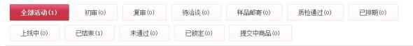 首先需要報名活動,接著經(jīng)過四步、七道工序,分別是初審-復(fù)審-洽談-樣品郵寄-樣品質(zhì)檢-排期-上線,活動才算正式開始。
