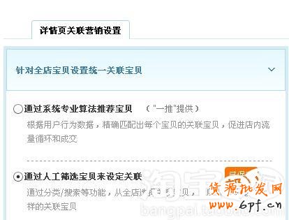 然后:針對全店寶貝設置統一關聯寶貝——選擇通過人工篩選寶貝來設定關聯