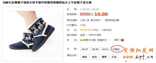 該商品為女士靴子,顯然47碼是不正常的,賣家設(shè)置超大碼SKU同樣是為了設(shè)置低價吸引流量,屬于SKU作弊。