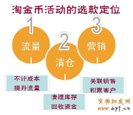 首先,我們要確定店鋪參加淘金幣活動的目的,也就是活動定位??傮w而言,選擇做淘金幣活動的賣家一般有以下三方面的訴求——流量、清倉和營銷。