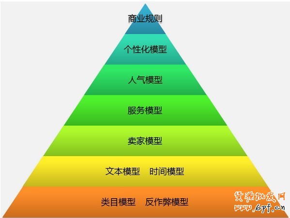 下圖為淘寶金字塔搜索模型結構,從下往上逐層過濾,能到達金字塔最頂端的商家&商品算是最優秀的,當然也會推薦給消費者。