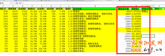 2)先選中成交指數這列,按降序擴展排列,從高到低選擇你需要的詞,給整行標同樣的背景色,在“篩選依據”這列填“按成交指數”具體如下圖: