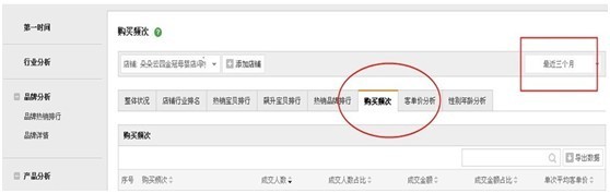 除此之外,在數據魔方后臺自帶的店鋪分析----購買頻次里面也能看到最近三個月內不同購買頻次的成交客戶人數與占比。一般來說,期間購買1次的客戶占比越少,證明店鋪的CRM狀況越好,因為購買2次或者2次以上的客戶占比比較高,而這里的“二次復購率”也基本等同于人們常說的“百日復購率”: