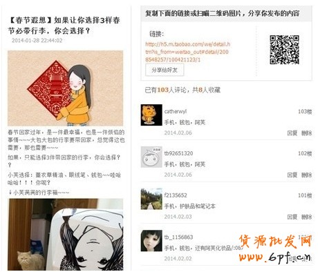 考慮到春節期間,大致的話題:車票、春運、團聚、年夜飯、春晚。所以,所發的微淘內容,基本都要是一些靠近粉絲,跟粉絲有密切關系的。這樣一方面能引起他們的關注,另一方面能觸發他們的興趣參與互動討論。