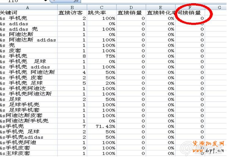 在下載下來的表格中,刪除間接銷量列 ,把直接銷量、直接轉化率和直接訪客全部修改成銷量、轉化率、訪客。