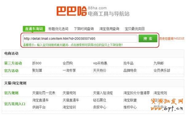 2、將寶貝地址輸入到巴巴哈搜索框,如下