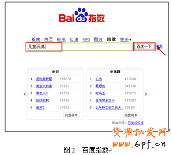 現(xiàn)在就打開【百度指數(shù)】首頁,在搜索欄中,輸入你網(wǎng)站的主要目標關(guān)鍵詞“兒童玩具”,如圖2所示,單擊“百度一下”按鈕。