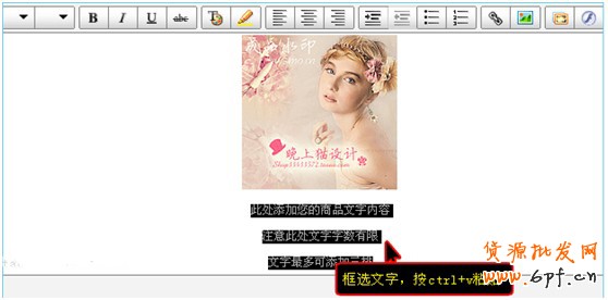 第六步,修改好圖片后,我們就可以直接在模板編輯的頁(yè)面修改對(duì)應(yīng)寶貝的文字以及價(jià)格了。