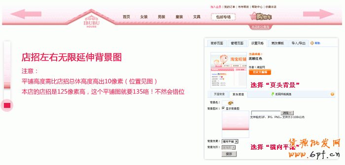 下圖就介紹了使用旺鋪設置“頁頭背景”的功能