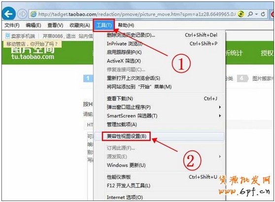 首先,賣家先打開自己的IE瀏覽器,(注意,不是360或者其他瀏覽器哦) 然后在菜單欄里找到“工具”,右擊工具選項,就會看到一系列的類目,接著選擇“兼容性視圖設置”。