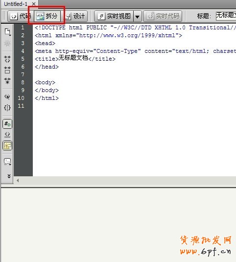 然后點左上角的“拆分”這樣是為了看著方便!然后把里面的代碼全部刪掉,不要!