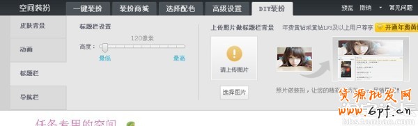 依次點擊:QQ空間裝飾---我的裝飾---設置標題欄高度