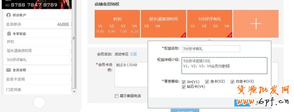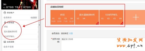 會員卡說明設置------賣家可在會員卡說明頁說明會員等級、會員權益等;