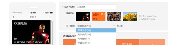 會員卡檢查無誤后立馬去無線運營中心裝修,讓店鋪會員馬上領到專屬的會員卡: