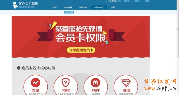 若您的店鋪已達到4鉆、且已設置會員等級,恭喜你獲得會員卡權限,點擊”立即激活活動會員卡“: