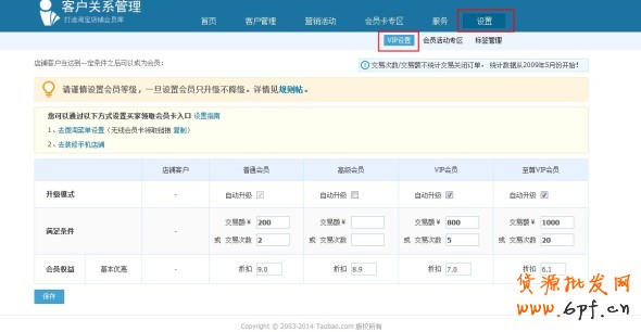進入VIP設置,先設置相應的會員等級: