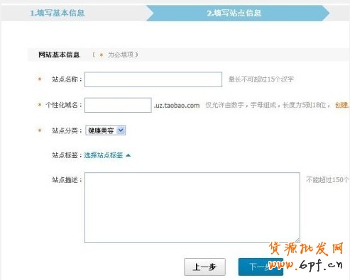 第三步,進(jìn)入站點(diǎn)信息的填寫(xiě),可以編輯一個(gè)自己喜歡的個(gè)性簽名。PS:個(gè)性域名填寫(xiě)一定要慎重,一旦填寫(xiě)就不能修改了。