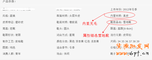 商品錯放雪地靴屬性