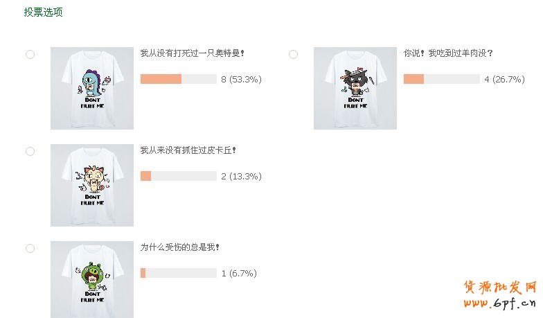 “活動策劃了幾期, 買家們都覺得挺好玩的,就是團隊人少,最近想再策劃幾個活動,比如一些款式的投票目前會比較有效果些。” UNCLEMO墨大叔的掌柜墨小竹說還是愿意多做一些款式投票的活動,可以多一個渠道了解買家的雪球。墨大叔2013新主題“Don't hurt me”大叔cos四個經典分派角色的t恤就是通過后院活動進行投票,才選出的最受歡迎角色。