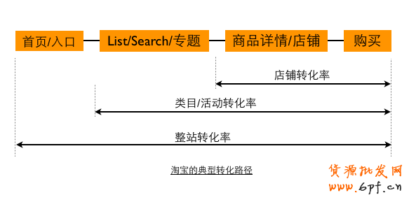 這是典型的淘寶瀏覽路徑,所有的轉(zhuǎn)化都是在一個路徑上去算的。這里面就有幾個轉(zhuǎn)化。