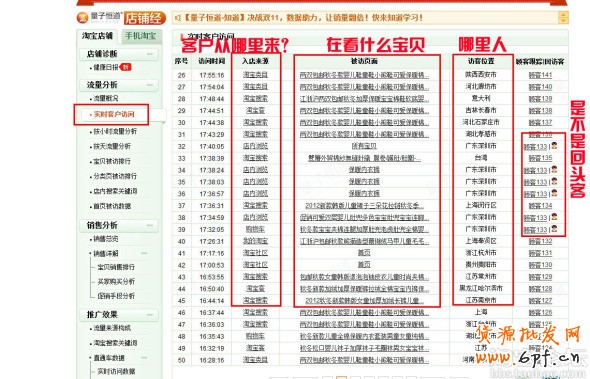 你可以從中分析什么:今天從哪里來的客戶比較多?客人們關注哪些寶貝?哪個地區來的人多?今天的回頭客多嗎?