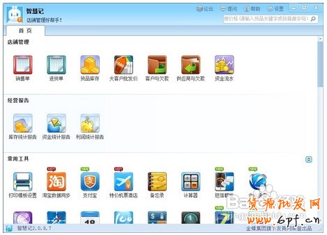 除了使用以上方法,還可以借助淘寶免費進銷存軟件“智慧記”的淘寶數據同步功能來打印快遞單,首先登陸智慧記,選擇“常用工具”欄中的“淘寶數據同步”功能