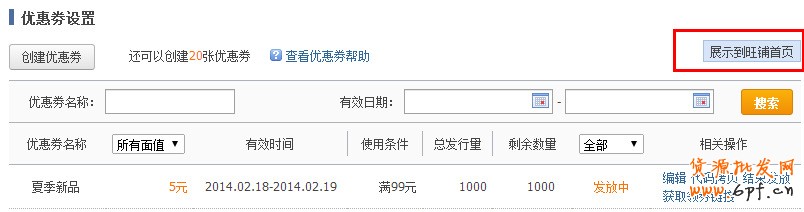 第三步、優惠券展示到旺鋪,點擊“展示到旺鋪首頁”