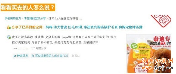 看完了店主的自吹自擂,這個(gè)時(shí)候就應(yīng)該下一帖猛藥,就是客戶分享以及截取真實(shí)評價(jià),增加看到這個(gè)頁面的狗狗主人的信息,別人用了都說好,對促進(jìn)新客戶成交就更有推波助瀾的感覺。