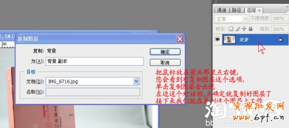 把鼠標(biāo)放在箭頭處然后單擊右鍵,您會看到有復(fù)制圖層這個選項,然后您單擊復(fù)制圖層,就出現(xiàn)了圖中這個對話框,接著您點擊確定就OK了..