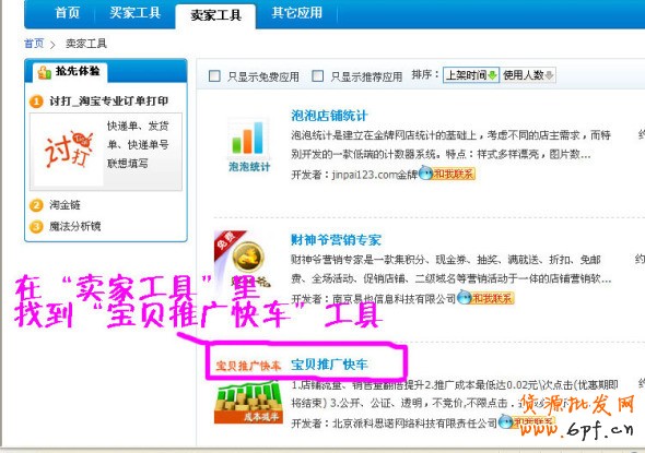 操作:我的淘寶—我是賣家—軟件產品/服務——我要訂購—購買軟件服務—淘寶箱—寶貝推廣快車—立即訂購