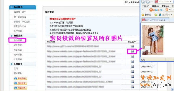 寶貝投放在網站位置及所在的圖片,具體操作:打開“所在頁面”下的網頁;在網頁內找到“所在圖片”下那張圖片;把鼠標移動該圖片內,會看到黃色的商品標簽;把鼠標移到黃色商品標簽上就看到自己的商品信息了。