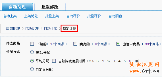 6.或者也可以選擇“自定義分配”,按照寶貝占比來設置上架時間。如下圖: