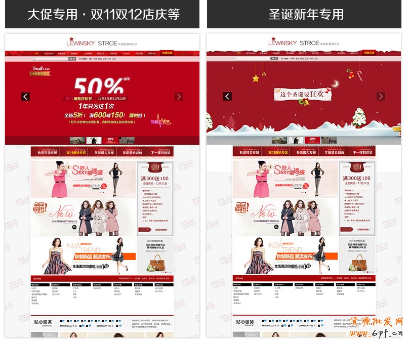 紅色,大紅,沒錯!君不見每次淘寶雙11、雙12專題,都是非常火紅、非常惹人注目的嗎?用上這款火紅的模板,我的店鋪生意也紅紅火火的!