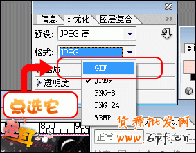 6.做到這步我們就可以導出動畫了,但是有良多朋友都問怎么導出,實在很簡樸,就是"文件"--"將優(yōu)化結(jié)果存儲為"操縱,但是仍是有良多朋友說導出的并不是GIF格局,而是JPG格局或者PNG格局,無法顯示動畫.這時我們就要看看優(yōu)化面板了:假如你保留老是得不到GIF格局,那么極有可能是優(yōu)化格局選成了JPEG或者PNG了