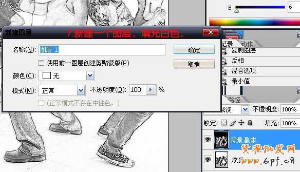 這里解釋下第3,4,5步操作的原因,當圖像反相并與原圖像“顏色減淡”混合,由顏色減淡的原理,圖像成了白紙,但提取反相后的圖像的最小值再與圖像顏色混合,兩個圖層的微細差異這時候就可以顯現出來,這個就是我們所要的線條。